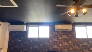リビングにあるエアコン2台(↑)と、寝室にあるエアコン(↓)の合計3台が