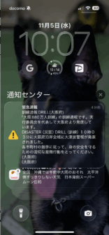 11月5日(津波防災の日)に行われた880万人訓練で緊急速報メールを受信した時、愛犬が・・・!
