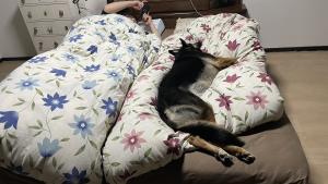 ママ様の寝るところがないんで、今日はソファで寝てもらいましょう😆