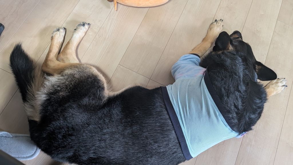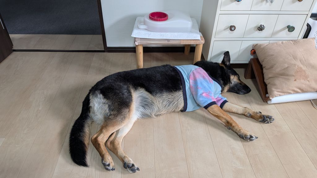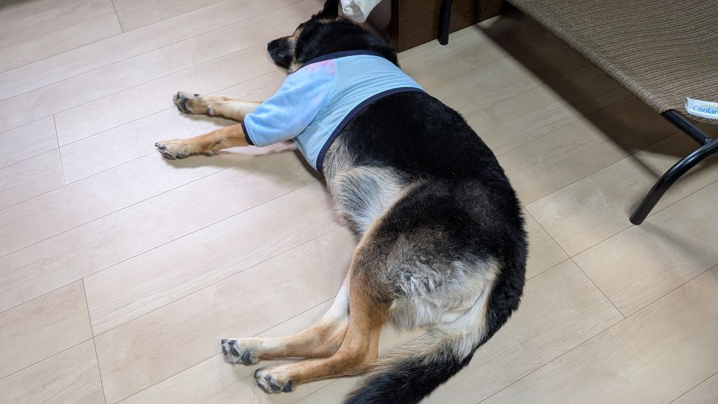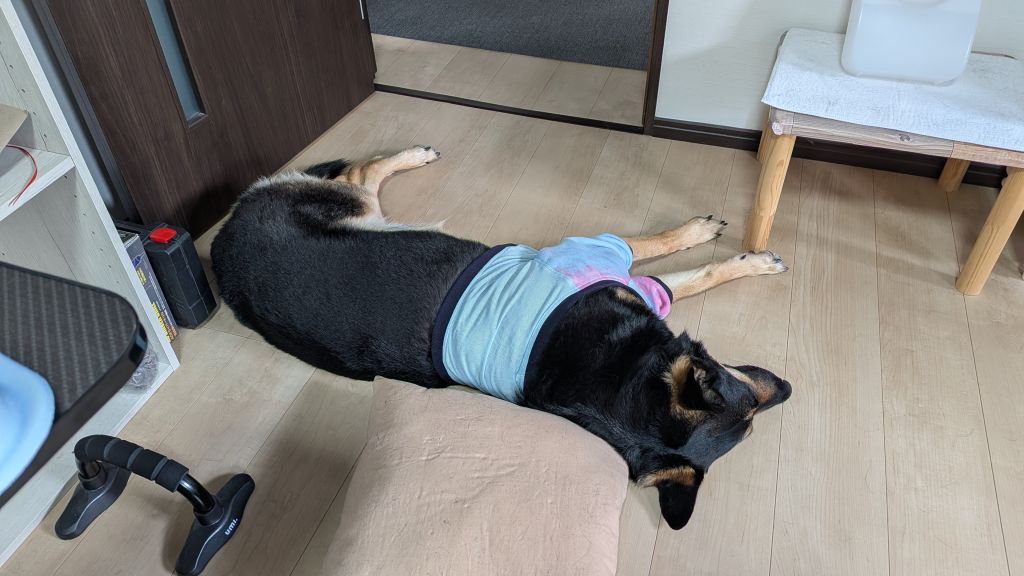 仕事中の飼い主にはうらやましすぎる維桜さんの寝姿でした。