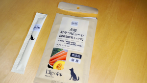 犬用おやつピューレ、どの味から食べようか迷ってたらエアーペロッ出ました
