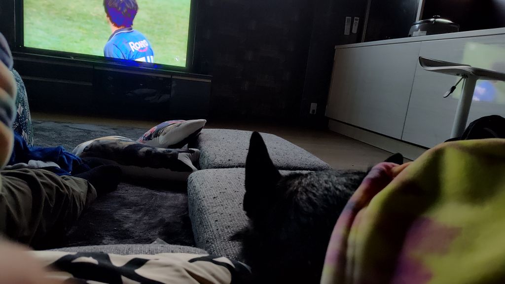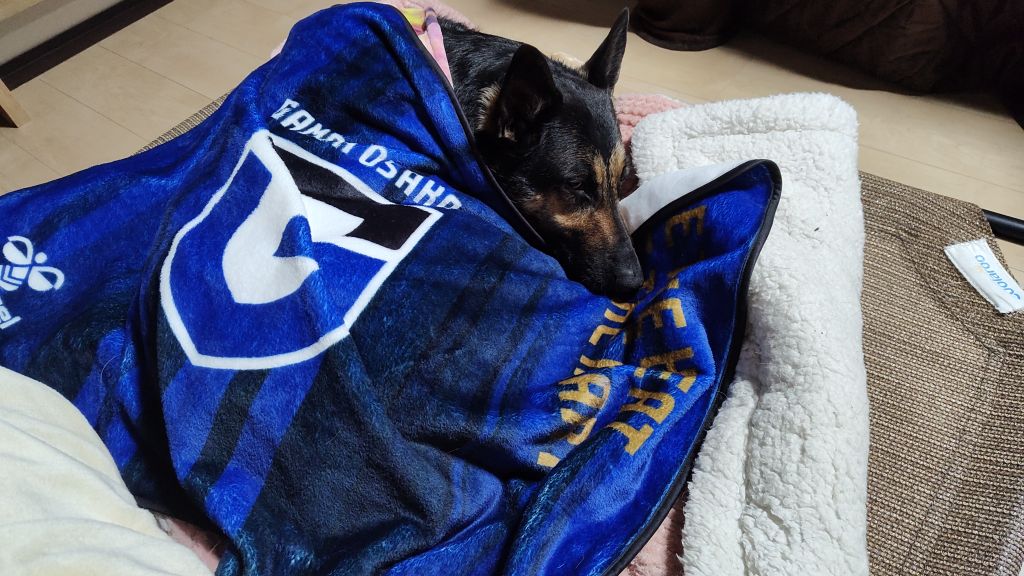 愛犬よ、ありがとう!一緒に応援してくれた(?)おかげで、ガンバ大阪の勝利を見届けることができましたw