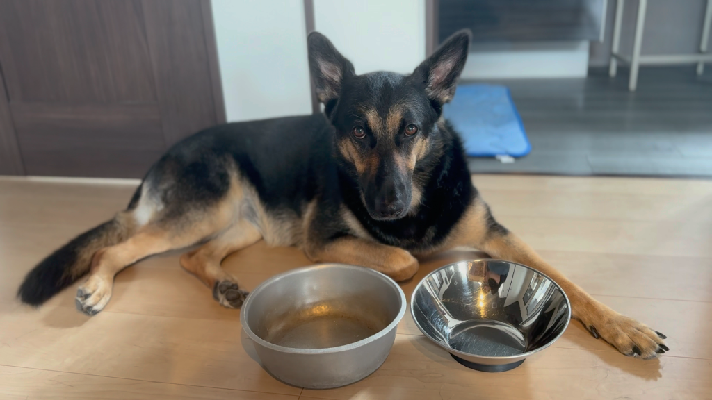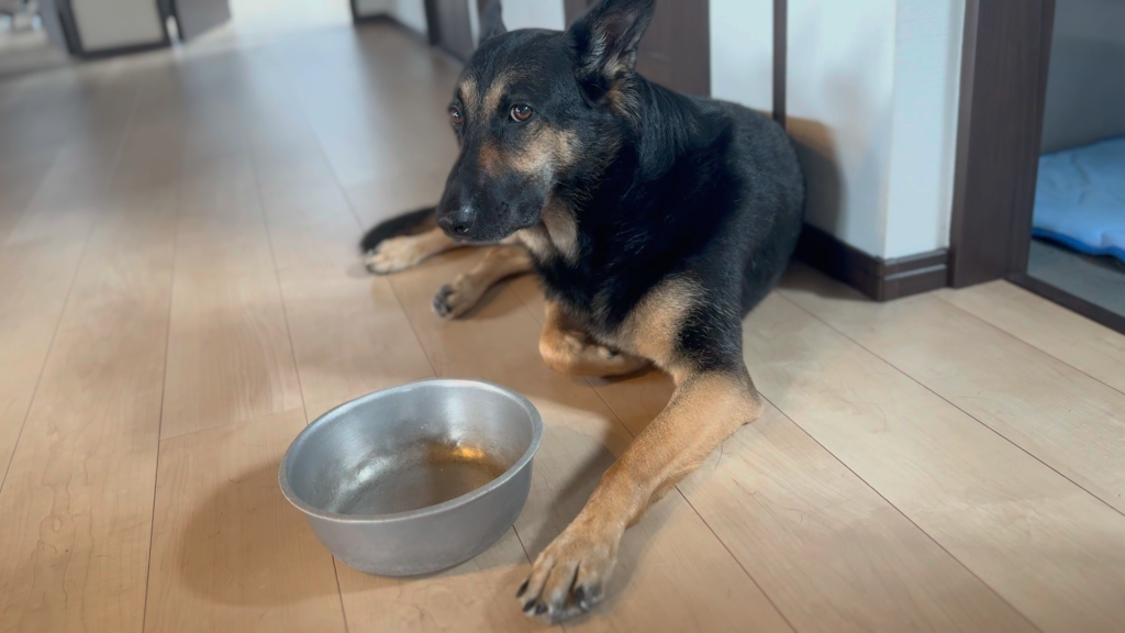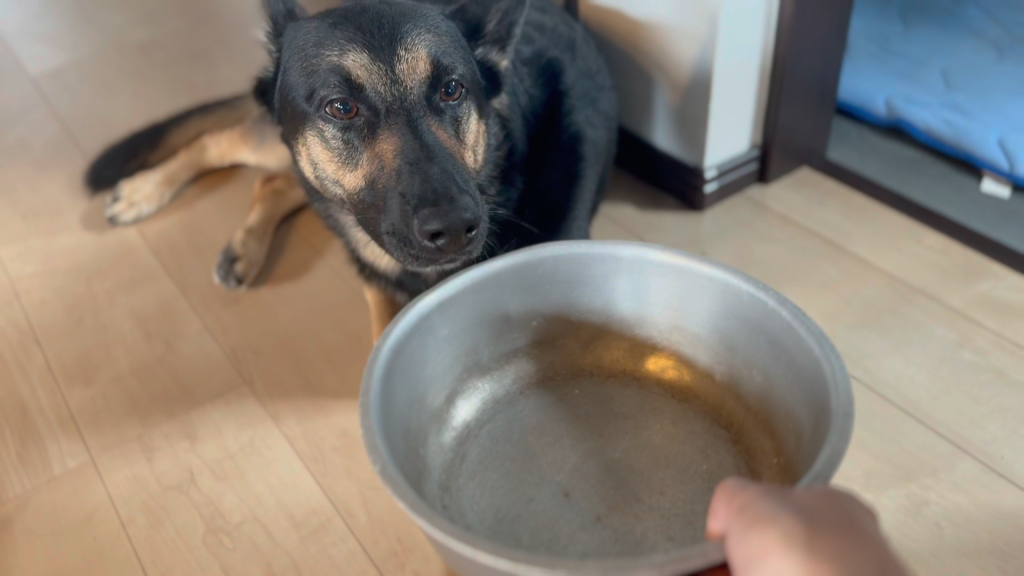 維桜さんの前にあるのは、ワンちゃんのお皿です。