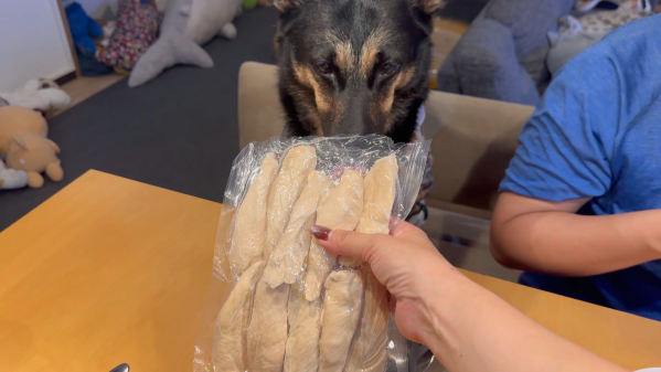 ちなみに、5袋まとめて買うと、ささみを2本プレゼントしてくれました。