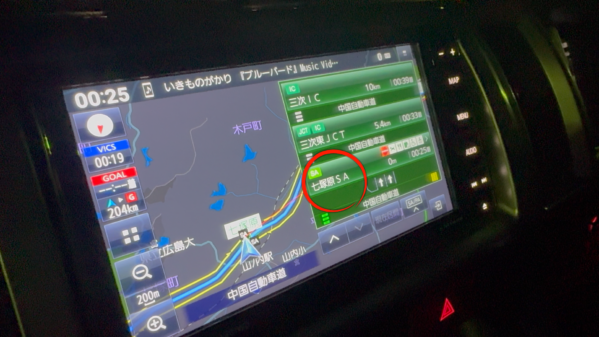 深夜を回る頃、広島県・七塚原SAに到着しました。