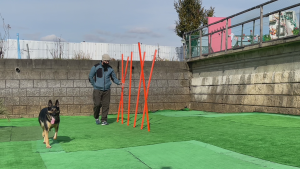 今日は、アジリティの障害物がたくさん置かれたドッグランへやってきました。