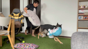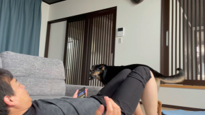 休日のお昼過ぎ、飼い主どもがリビングでくつろいでいると・・・