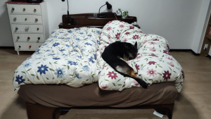 というわけで、なぜ私(飼い主♀)の布団の上で寝るのか、