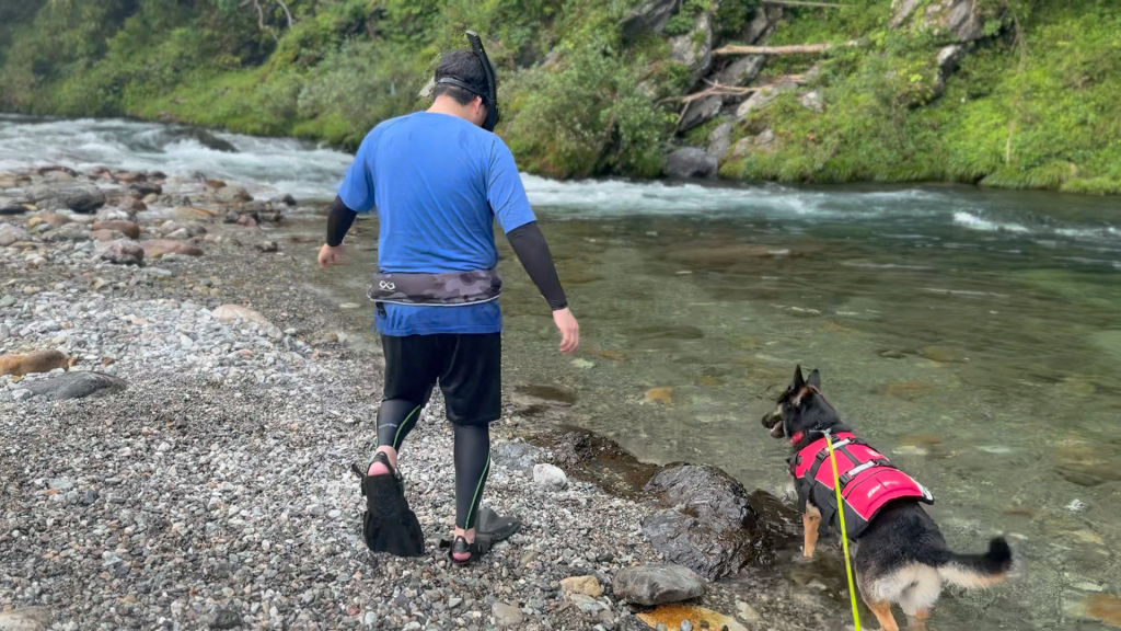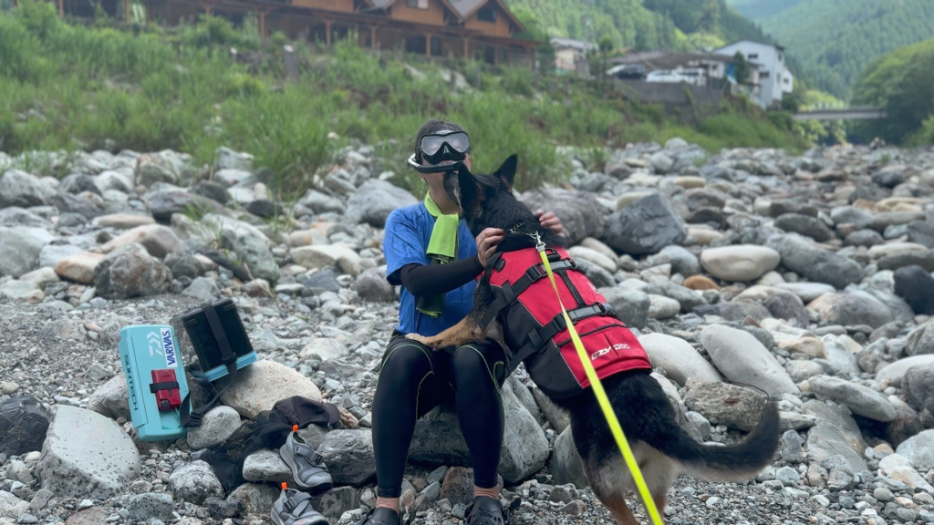 水がきれいだと、人も魚も犬もうれしくなっちゃいますね。