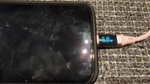 使用電力が数字になって見えるライトニングケーブルです。