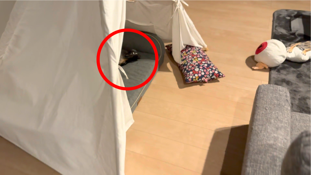 維桜さん、今日はリビングのベッドで寝ているようです。