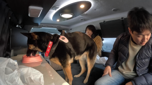 寒がりなジャーマンシェパード、生まれて初めてゴンドラに乗ってスキー場へ行く!
