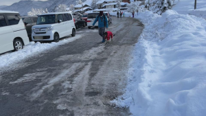 「やばいやばい、地面めっちゃ凍ってるー!」