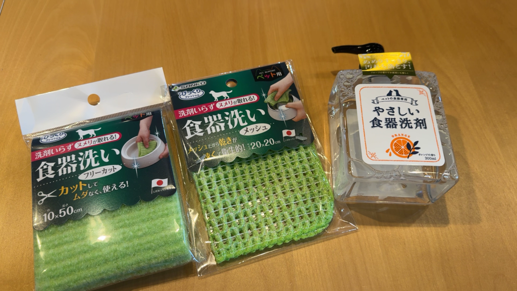 どれもワンちゃんの食器の「ぬめりが取れる!」ことに特化したアイテムです。