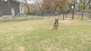このドッグランは、元牧草地だった場所だそうで、とっても広くて開放感がありました。