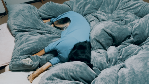 ・・・ことが出来ない寝相の日もあって、そんな夜は飼い主♀、アウターを来て隅っこに寝っ転がることになります。