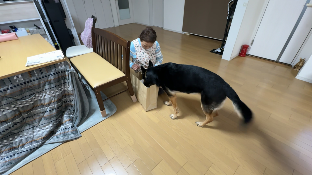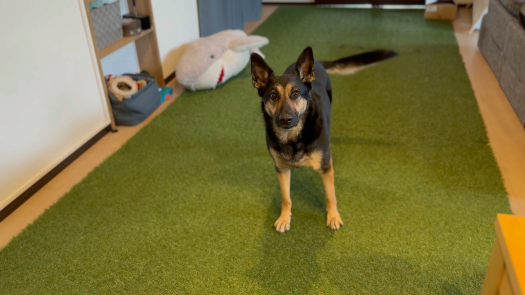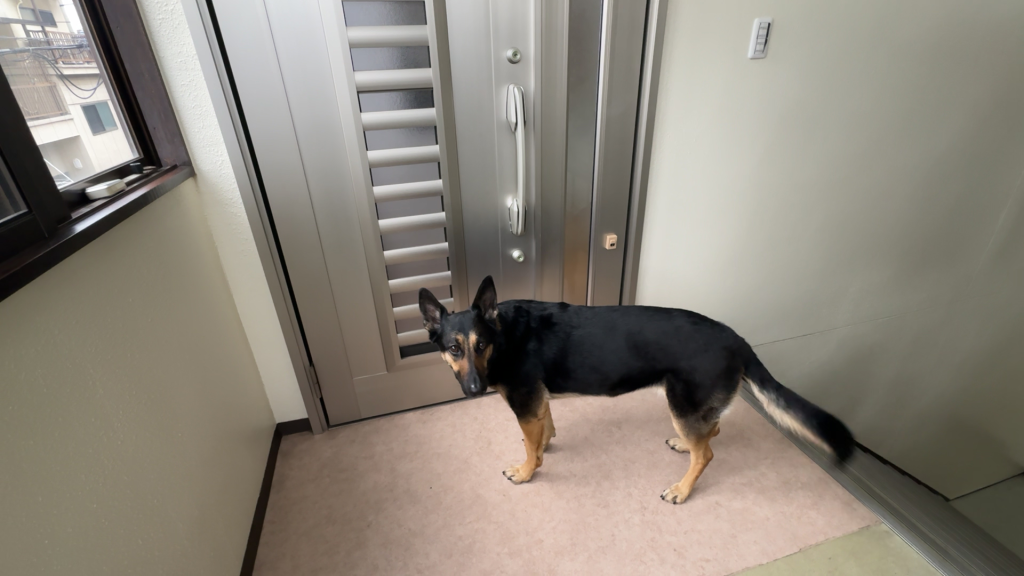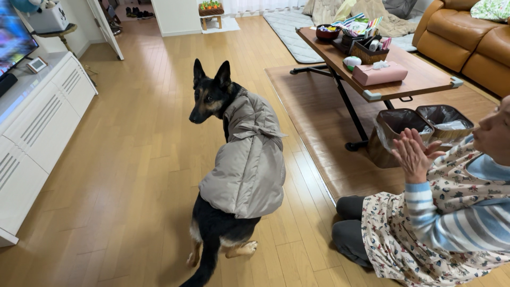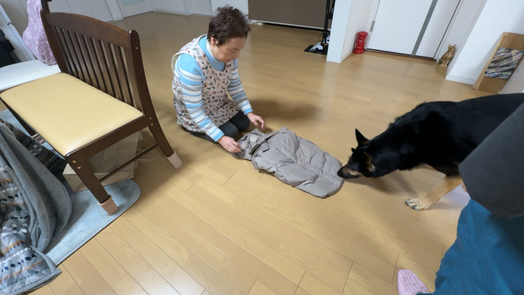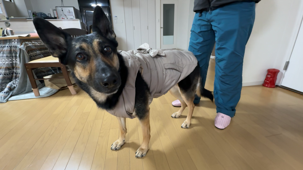 このダウン、実は去年まで私(飼い主♀)が着ていたものなんです。