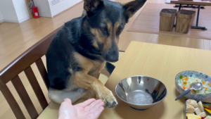 私(飼い主♀)のお手を断って、オババにお代わりを要求するなんて・・・!