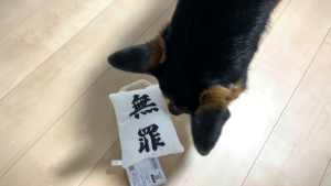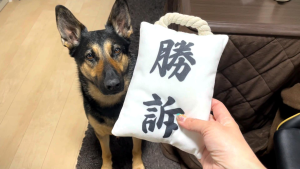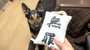 「無罪」と「勝訴」と書かれた犬のおもちゃ、皆様のワンちゃんにもいかがでしょうか?