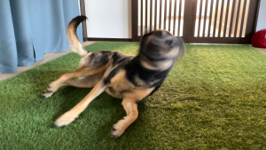 はい、フィラリア予防薬服用後の副反応(喜びの舞)でましたー!