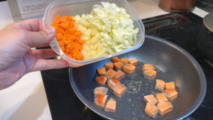 一緒に炒めるお野菜は、みんな大好き?人参・じゃがいも・キャベツ〜!