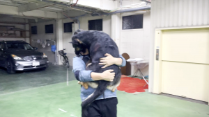 オヤジが抱っこして家の中まで連れて上がろうとしました。