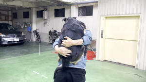 飼い主♀も、背中におんぶすることはできても、なかなか抱っこはさせてもらえません。