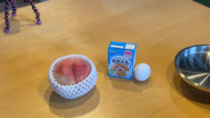 ワンちゃん用の牛乳と、卵、そして維桜さんの好きな桃です!
