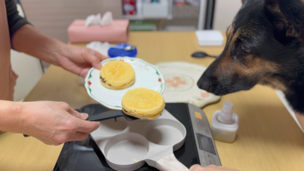 回転焼きがお好きな飼い主様、今日のおやつに愛犬と一緒に回転焼きはいかがですか?