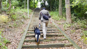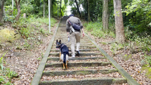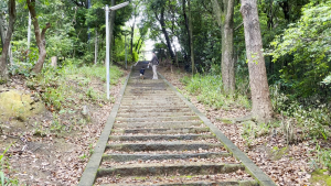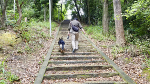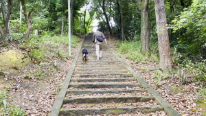山の石段をオヤジと一緒に上って行く維桜さん。