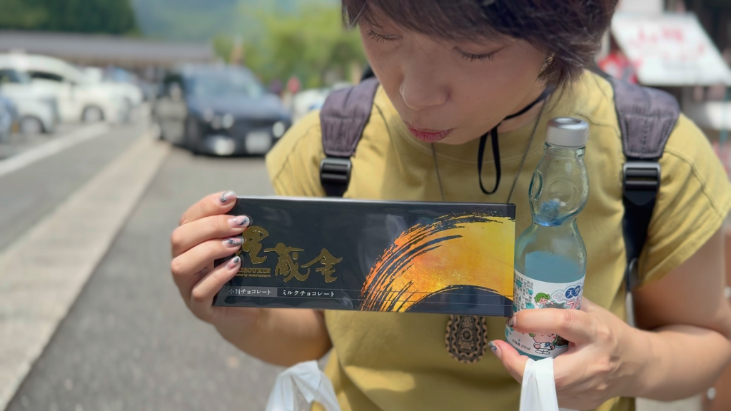 生野銀山で買った埋蔵金チョコ、箱を開けてビックリ〜!これは、愛犬とこんなことしたくなるわ〜!
