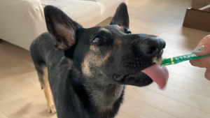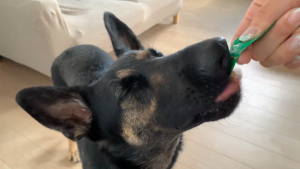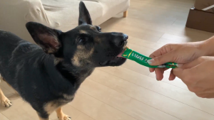 (維桜さんは食べる初体験、飼い主♀はあげる初体験ですね)