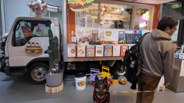 おいしいものがた〜くさんあるキッチンカーと、広いカフェブースがあります。