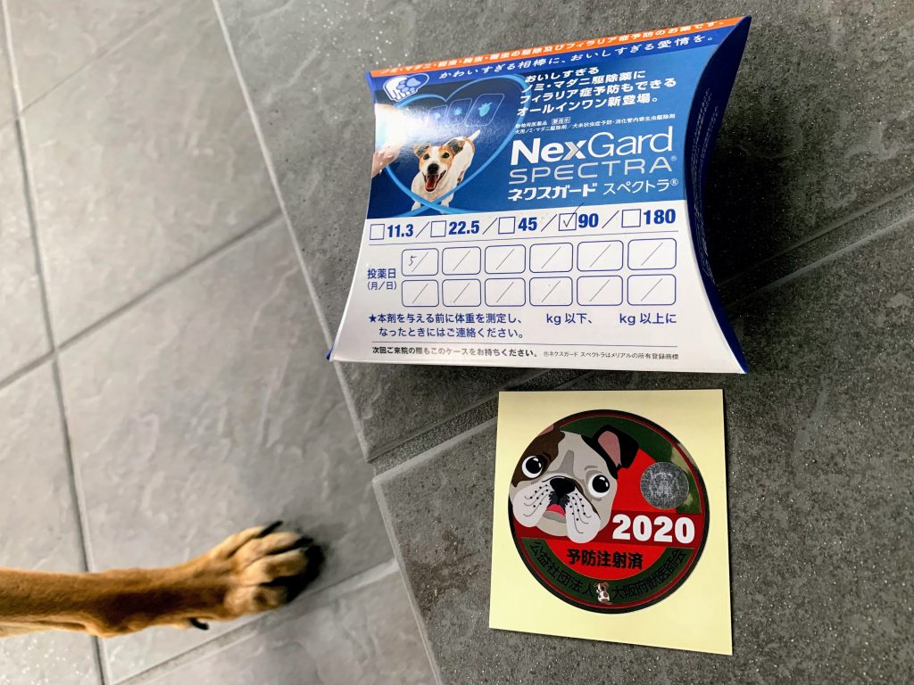 今月末から飲み始めるネクスガード スペクトラを予防注射済みのステッカーと一緒にもらって、いざ家路へ。