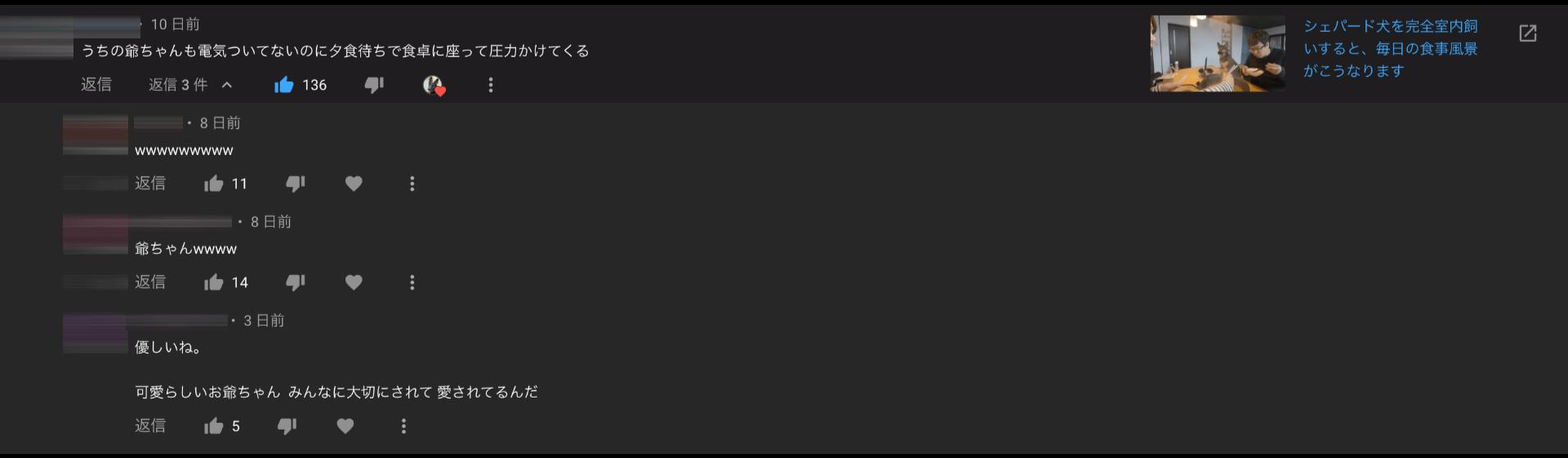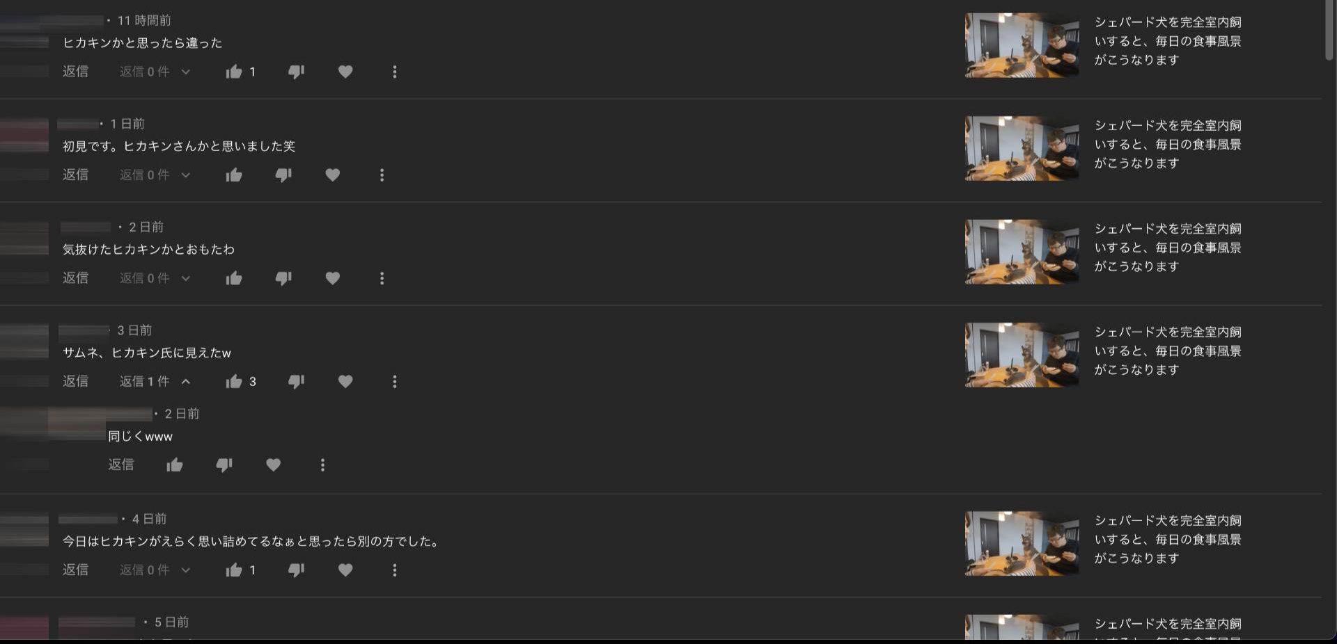 動画に頂戴したコメントで、私たち飼い主どもが思わず、