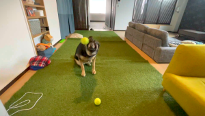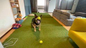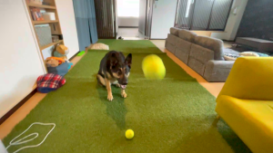 景気づけに、テニスボールをひとつ、パクッといっちゃう!?
