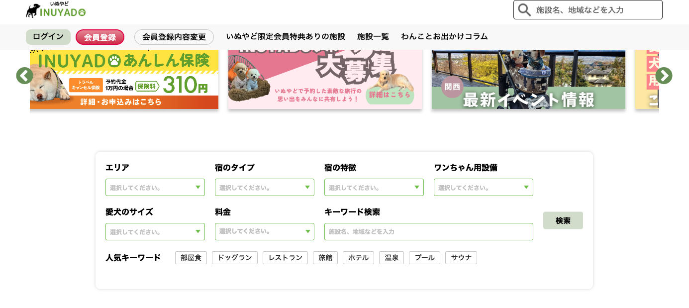 全国にあるペットと泊まれる宿が検索・予約できるサイトなのですが、