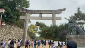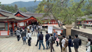 ここからは、徒歩で世界遺産の厳島神社へ向かいます。
