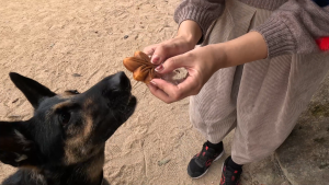 果たして、維桜さんは犬生初のもみじ饅頭を食べるでしょうか?