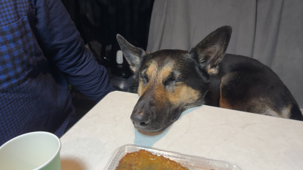 食べ終わったら、テーブルを拭くオヤジの背後霊になる維桜さんでした。