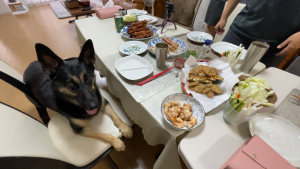 維桜さんが食べなかったきゅうりは、オヤジのお皿にそっと置いておきました。
