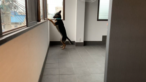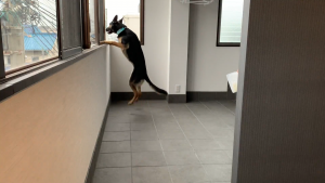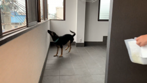 ←玄関から続くベランダへ、勢いよく走ってきた維桜さん