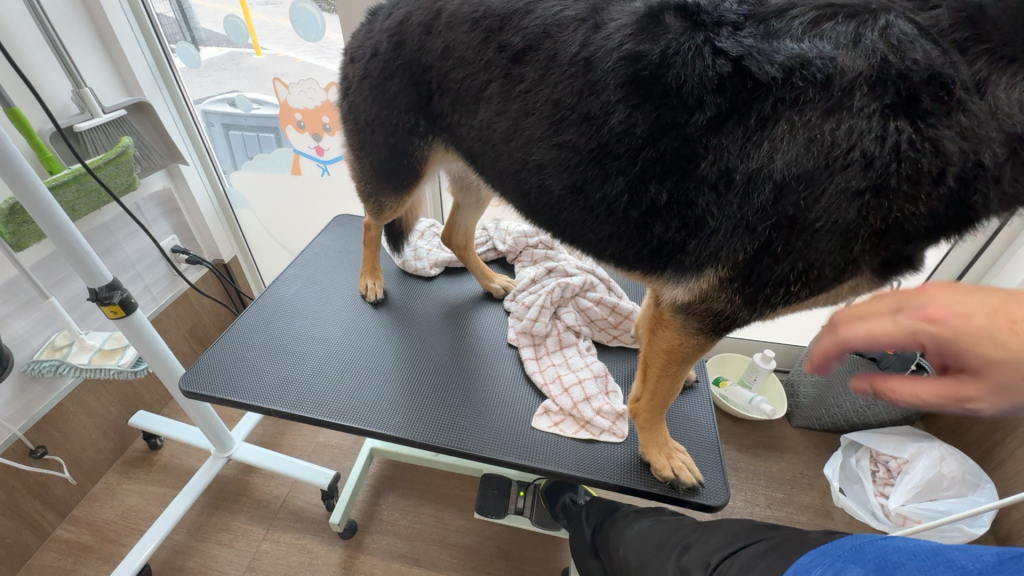 人間用のハンディドライヤーでは、維桜さんの剛毛は乾かしきれませんでした・・・。