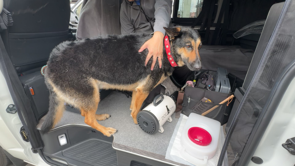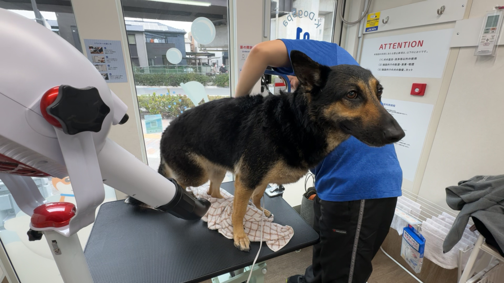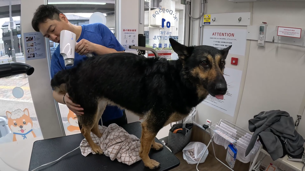 人間用のハンディドライヤーでは、維桜さんの剛毛は乾かしきれませんでした・・・。