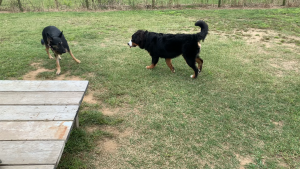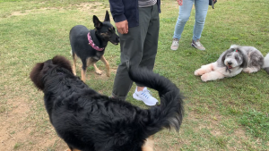 すぐにご挨拶に来てくれた、とっても気のいいバーニーズマウンテンドッグちゃんにもへっぴり腰の維桜さん。