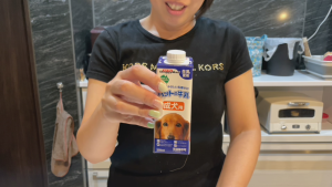 人間用は普通の牛乳ですが、維桜さんにはペットの牛乳〜!