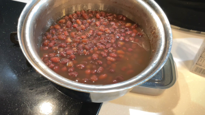まずは、トッピングの小豆を炊いてまいりますよ〜。