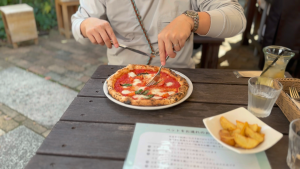オヤジがオーダーした焼き立てのマルゲリータ、めちゃめちゃおいしそう!