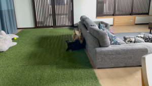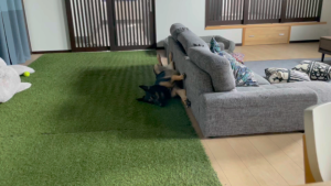 維桜さんは最近、こんな感じで、たまにソファの後ろに隠れています。