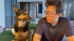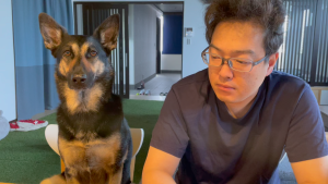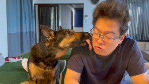 こうしていると、ささみに全集中してくれるのでオヤジが歯みがきしやすい